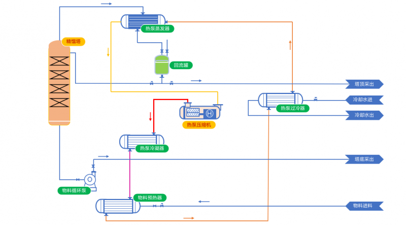 因為熱泵壓縮機不直接壓縮物料塔頂氣體,所以對物料性質沒有選擇性;